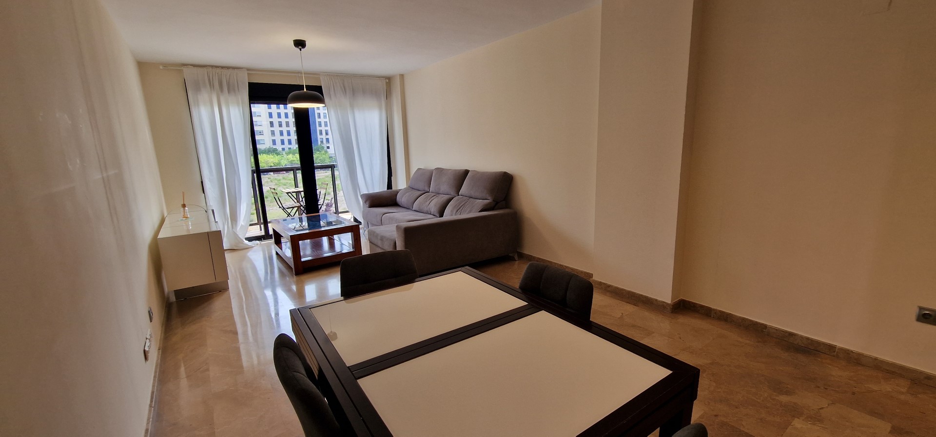 Vivienda en residencial con piscina y jardín en zona Ciudad de las Ciencias. Es un piso con 132 metros construidos distribuidos en una planta con salón-comedor con balcón hacia la calle, cocina independiente, 3 habitaciones y 2 baños (la habitación principal cuenta con baño en suite y vestidor).