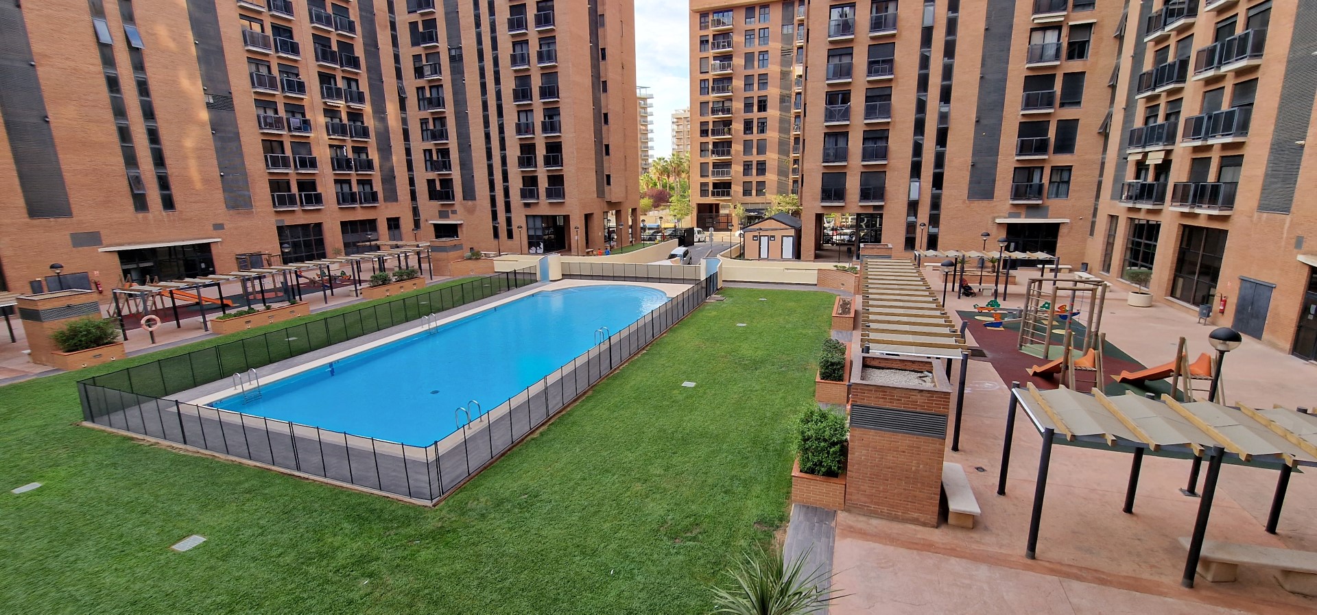 Vivienda en residencial con piscina y jardín en zona Ciudad de las Ciencias. Es un piso con 132 metros construidos distribuidos en una planta con salón-comedor con balcón hacia la calle, cocina independiente con zona de lavadero, 3 habitaciones y 2 baños (la habitación principal cuenta con baño en suite y vestidor).